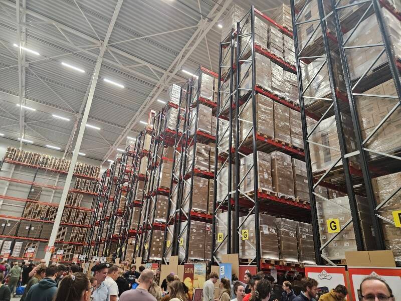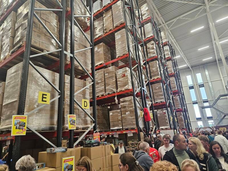 Bij aankomst bleek parkeren erg lastig. Alles stond vol. Uiteindelijk vonden we een plekje, gelukkig niet al te ver weg. Na een klein stukje lopen kwamen we bij het magazijn aan. Binnen was alles goed geregeld: duidelijke looproutes, vriendelijk personeel en een fijne sfeer.